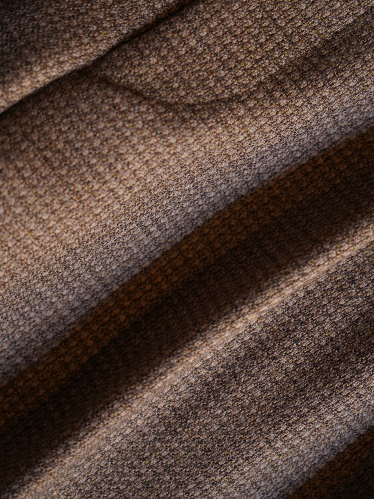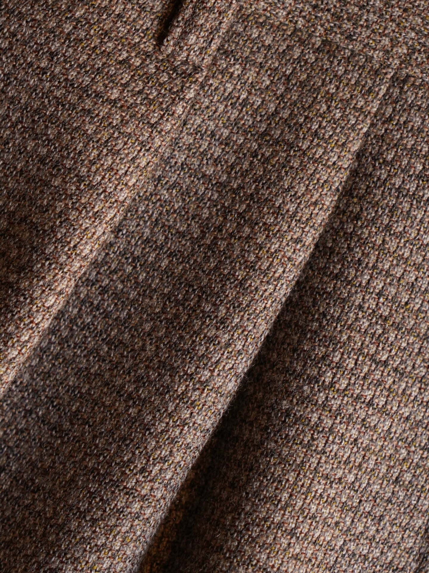 ベージュの様に見えますが、グレー・白・イエロー・オレンジの糸を格子状に織り上げたスラックス